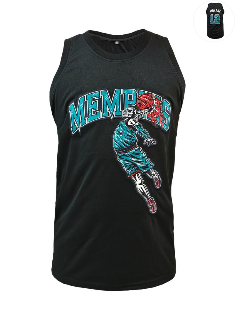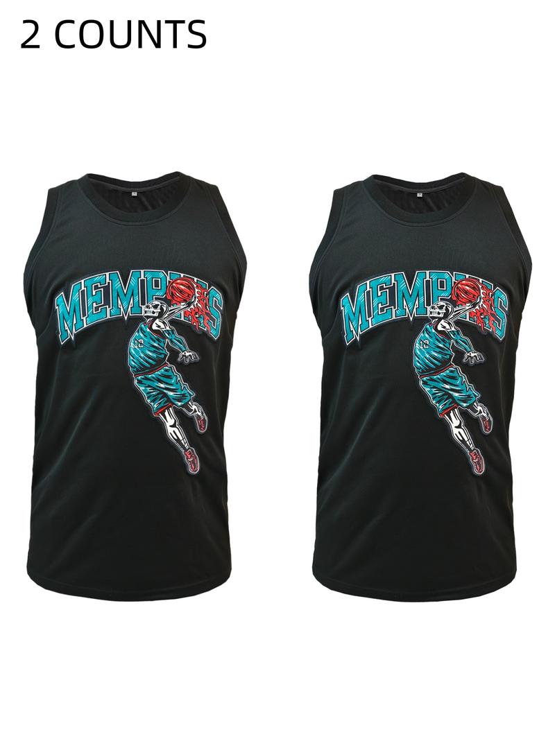 Men's Letter & Number Embroidery Basketball Jersey, Loose Sporty Sleeveless Basketball Top for Outdoor Training, Basketball Clothing for Men, Breathable Athletic Top, Sportswear Top, Sport Outdoor Clothes