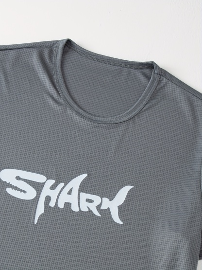 4pcs Men's Summer Short Sleeve T-Shirts - Cool & Breathable Quick-Dry Moisture-Wicking Athletic Tees with Shark Graphic Print, 4 Colors (Black/Red/Blue/Grey) for Running Gym Casual Wear, Athletic Wear| Graphic Tee| Durable Shirt, Gym Clothes