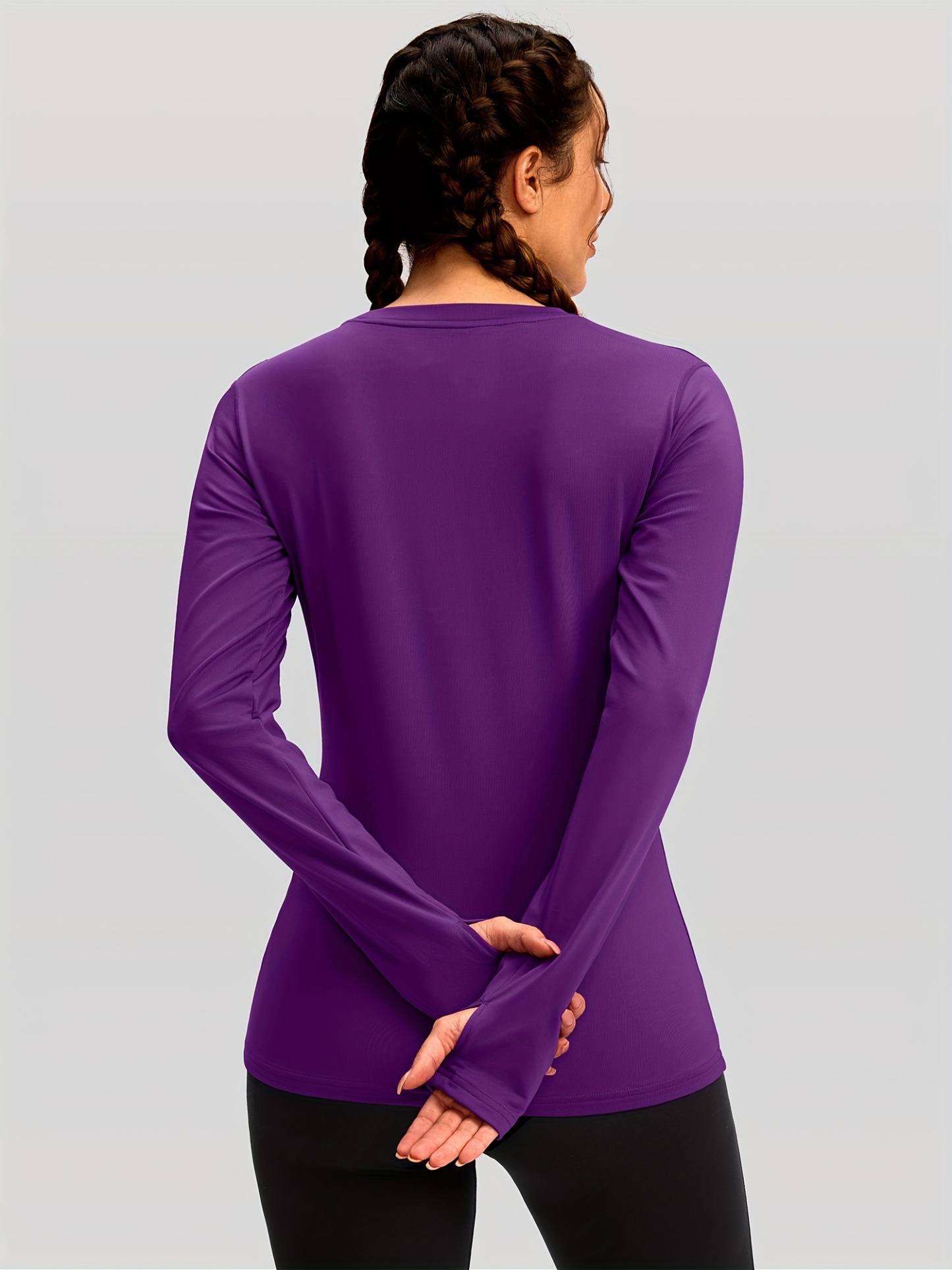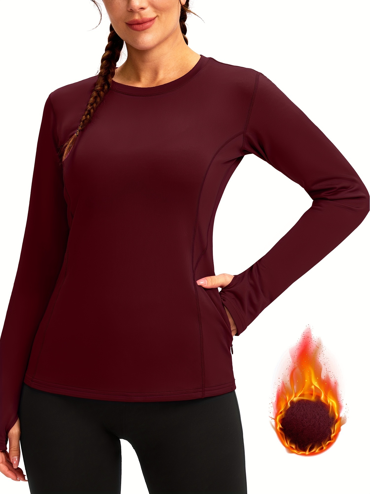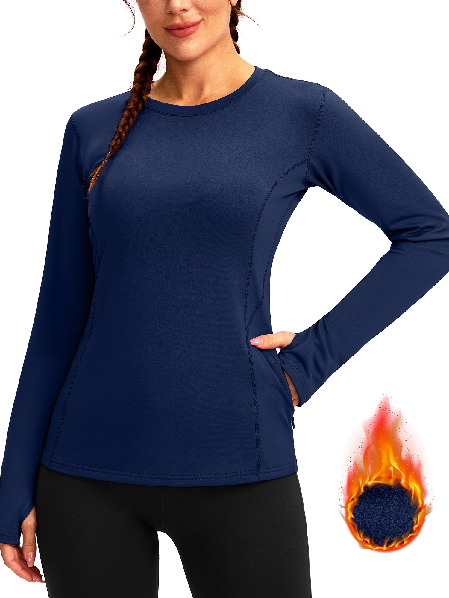 Long Sleeve Thermal Fleece Tops - Women's Workout Running Athletic Base Layer - Zipper Pocket with Thumb Holes