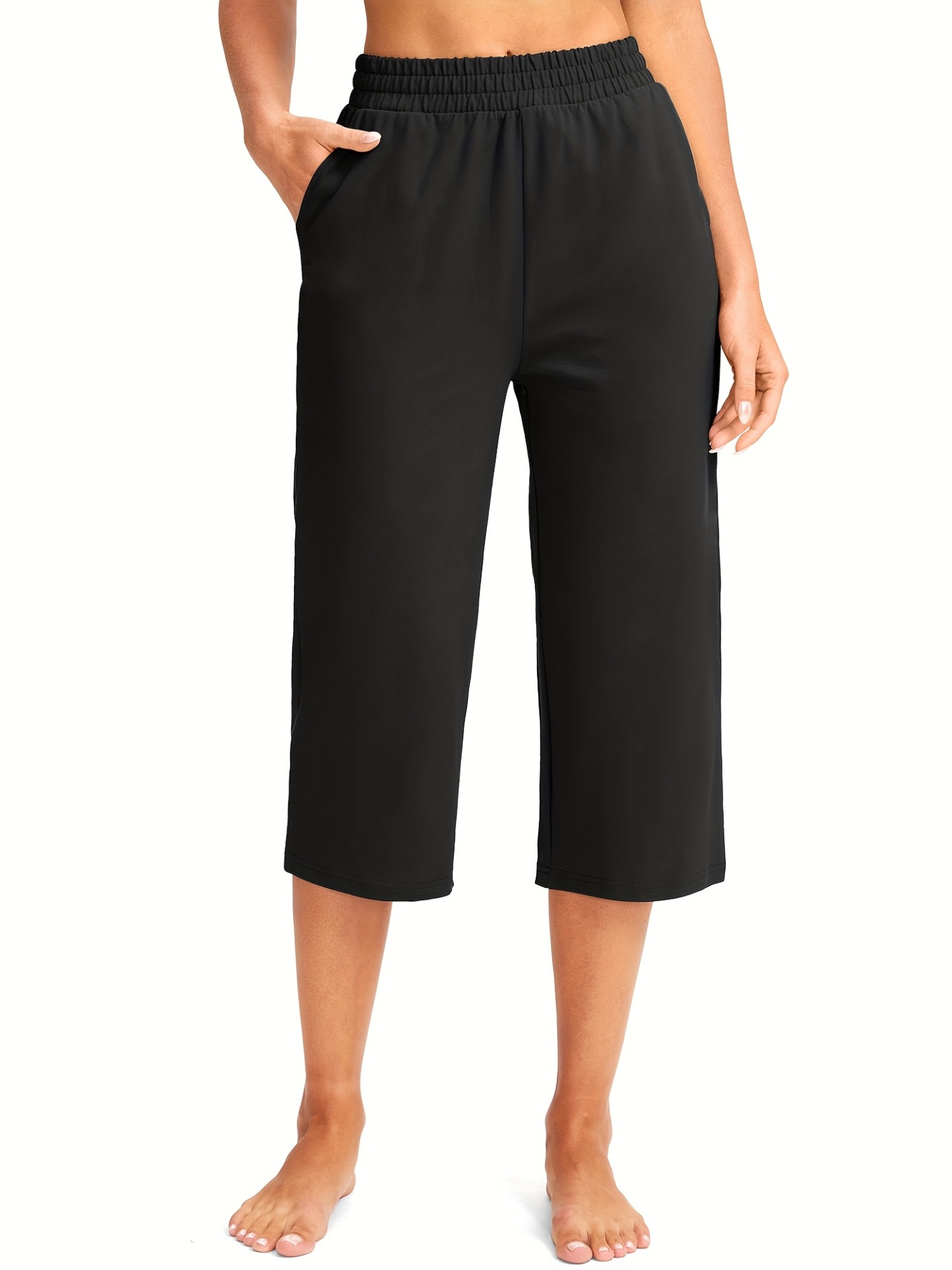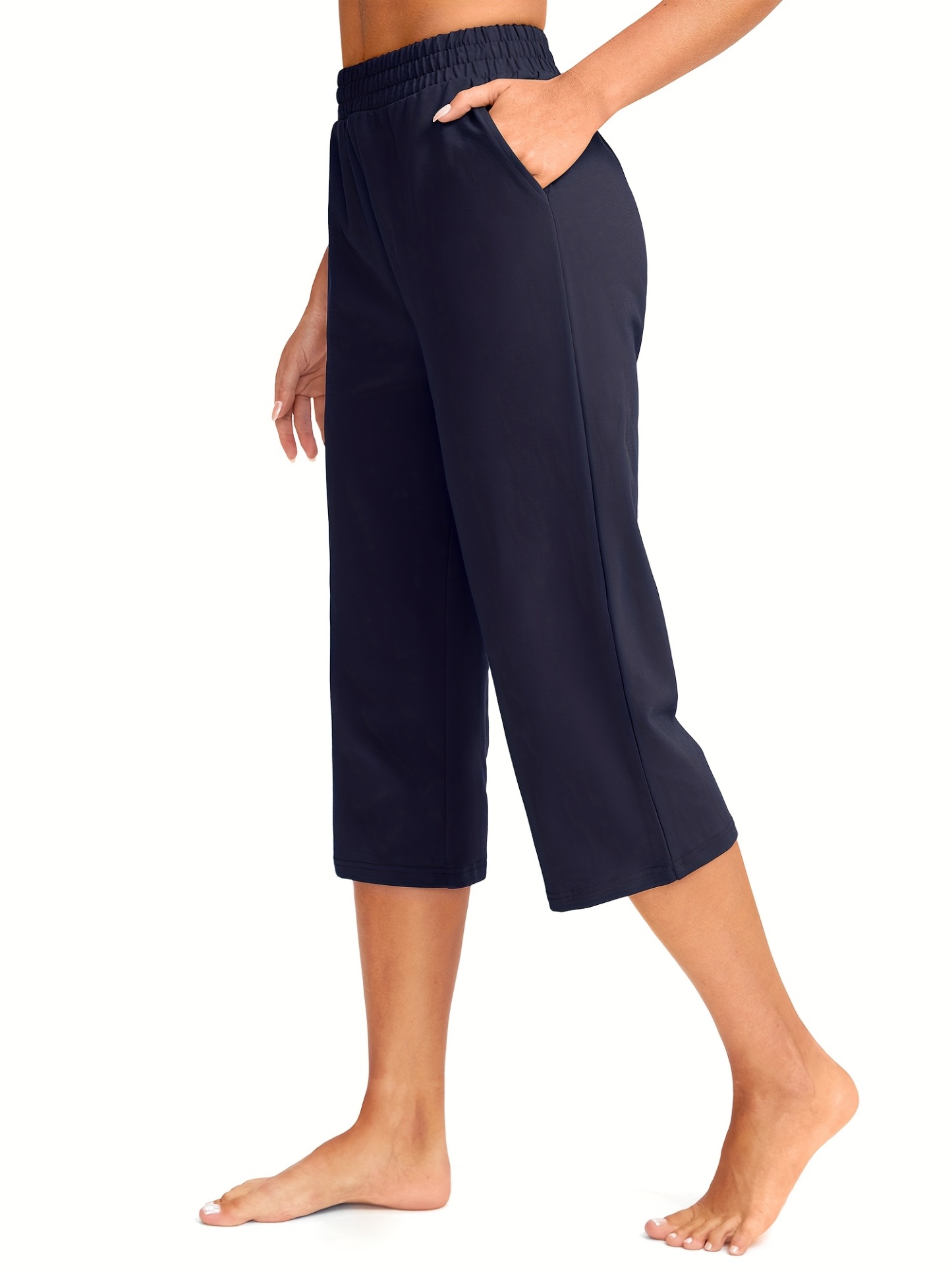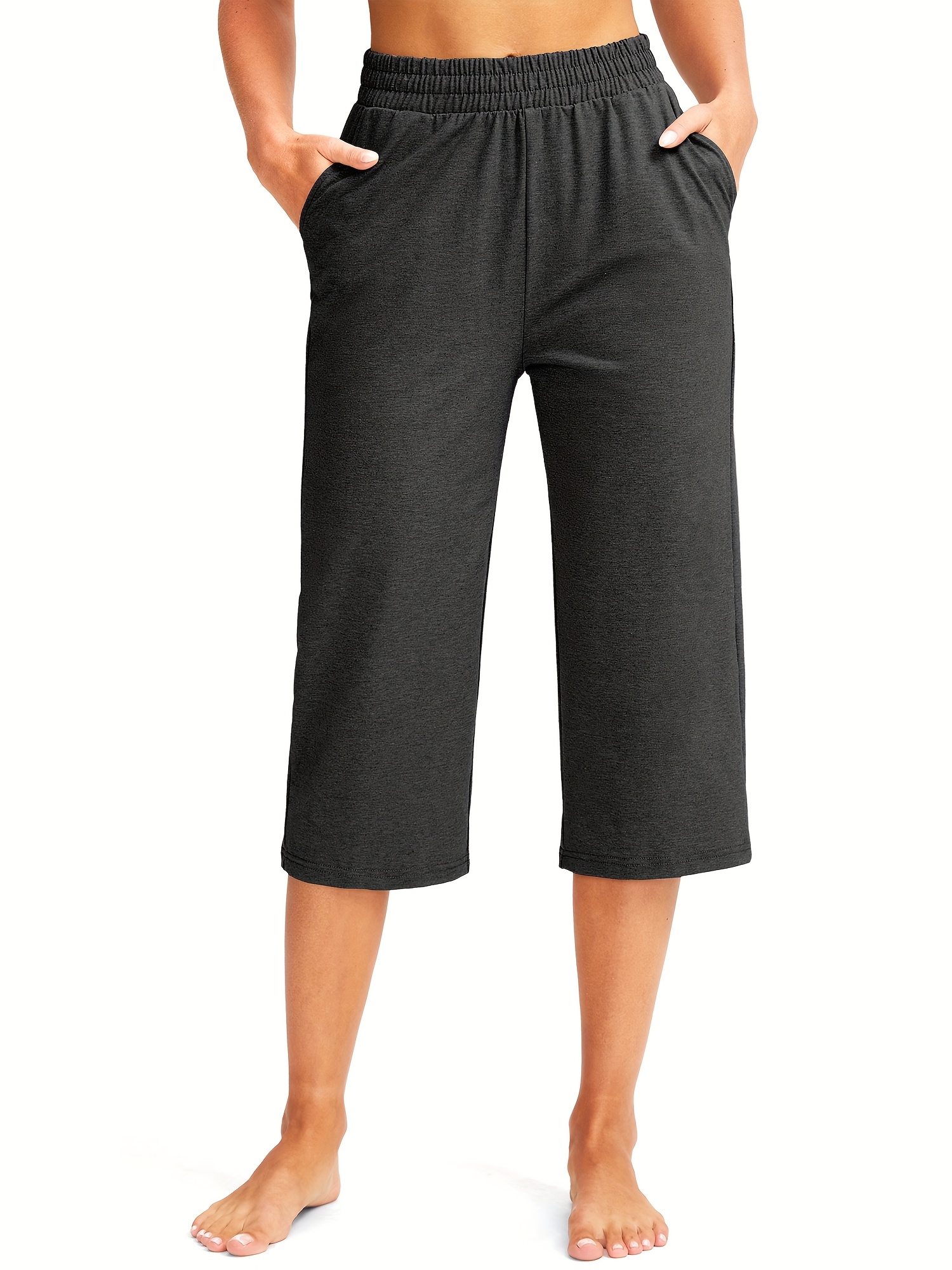 Women'S Capris Golf Pants 18" Capri Sweatpants Wide Leg Summer Casual Workout Pants With Pockets