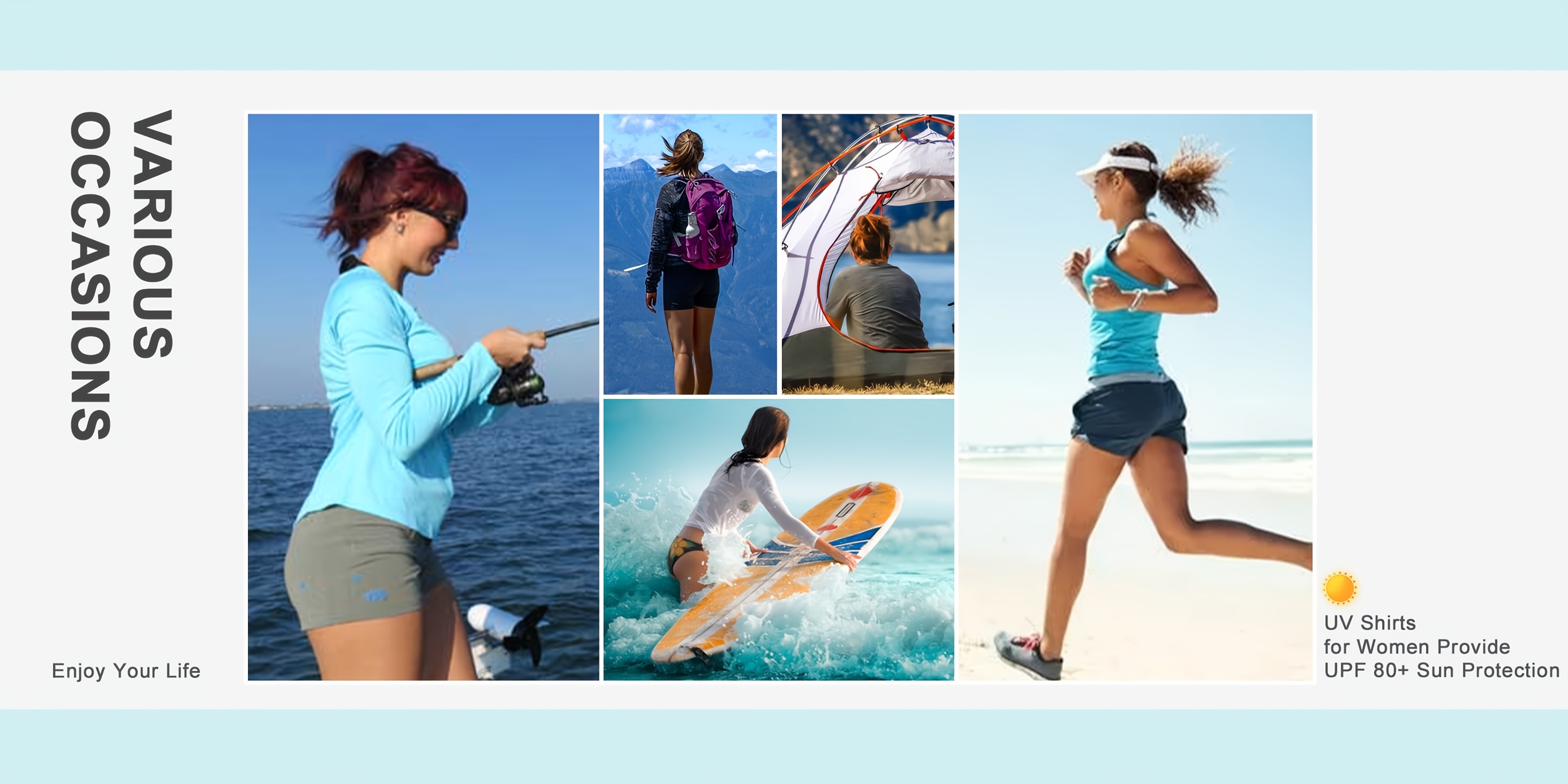 EVENT: This shirt with UV protection is ideal for activities like swimming, surfing, jogging, exercising, hiking, traveling, fishing, boating, and all your preferred outdoor pursuits.It can be paired with leggings or sweatpants.