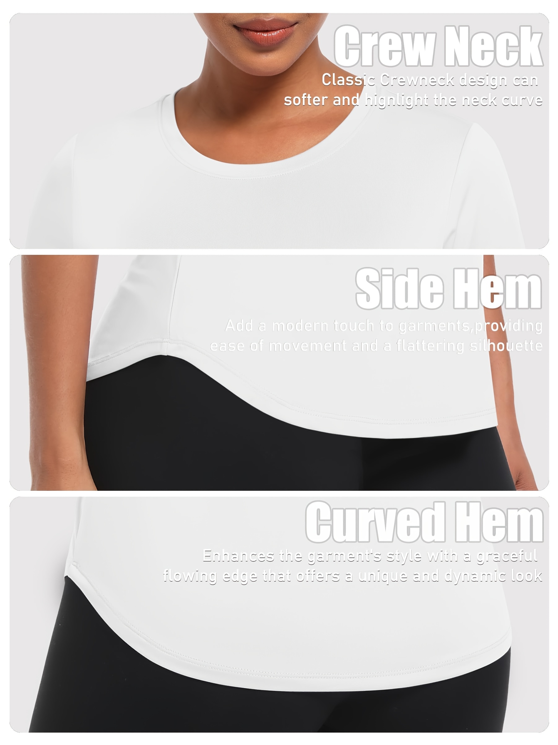 Curved Hem: Designed with an arched hem to enhance movement and flexibility during physical activities.