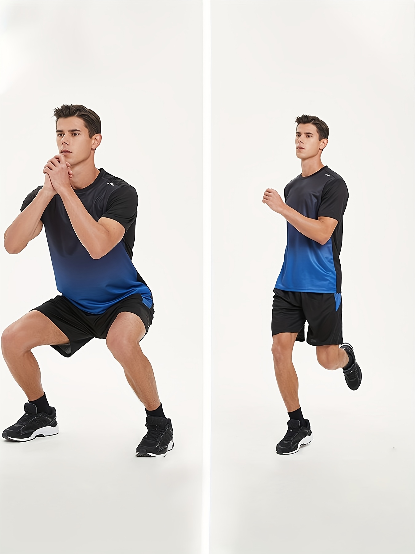 Summer Fitness Outfit Men's 6-Piece Short Sleeve Breathable Quick-Dry Sportswear