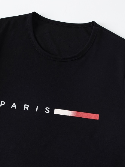 3pcs Men'S Summer Short Sleeve T-Shirts - Breathable Regular Fit Round Neck Workout & Fitness Tops with Paris Graphic Design, Navy Blue, White & Red Accents for Gym, Training & Casual Wear, Workout Shirts